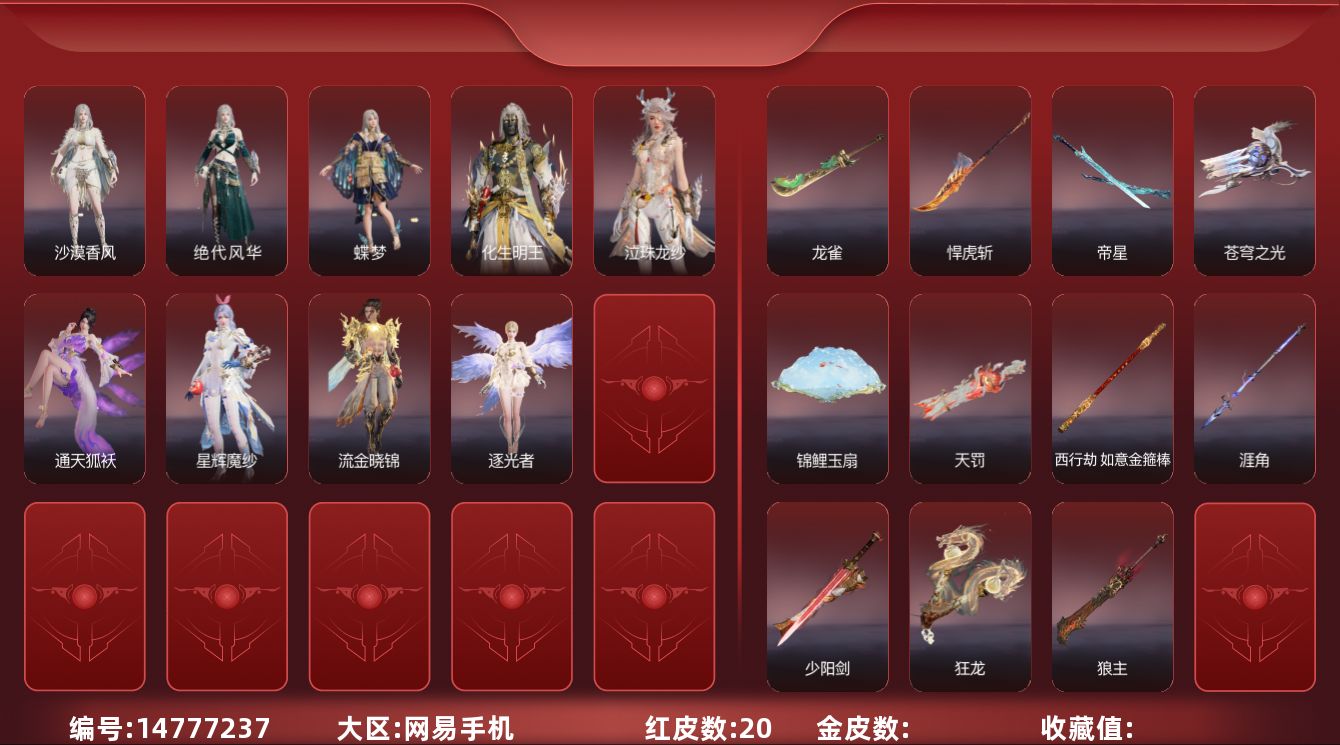 WYJ534【14红 30金 2龙之道 1夏日派对换绑时间1.15】【游戏等级】252【大区】正式服【排位】【神品皮肤】龙雀 狱炎烬甲 星辉魔纱 帝星 樱云天女