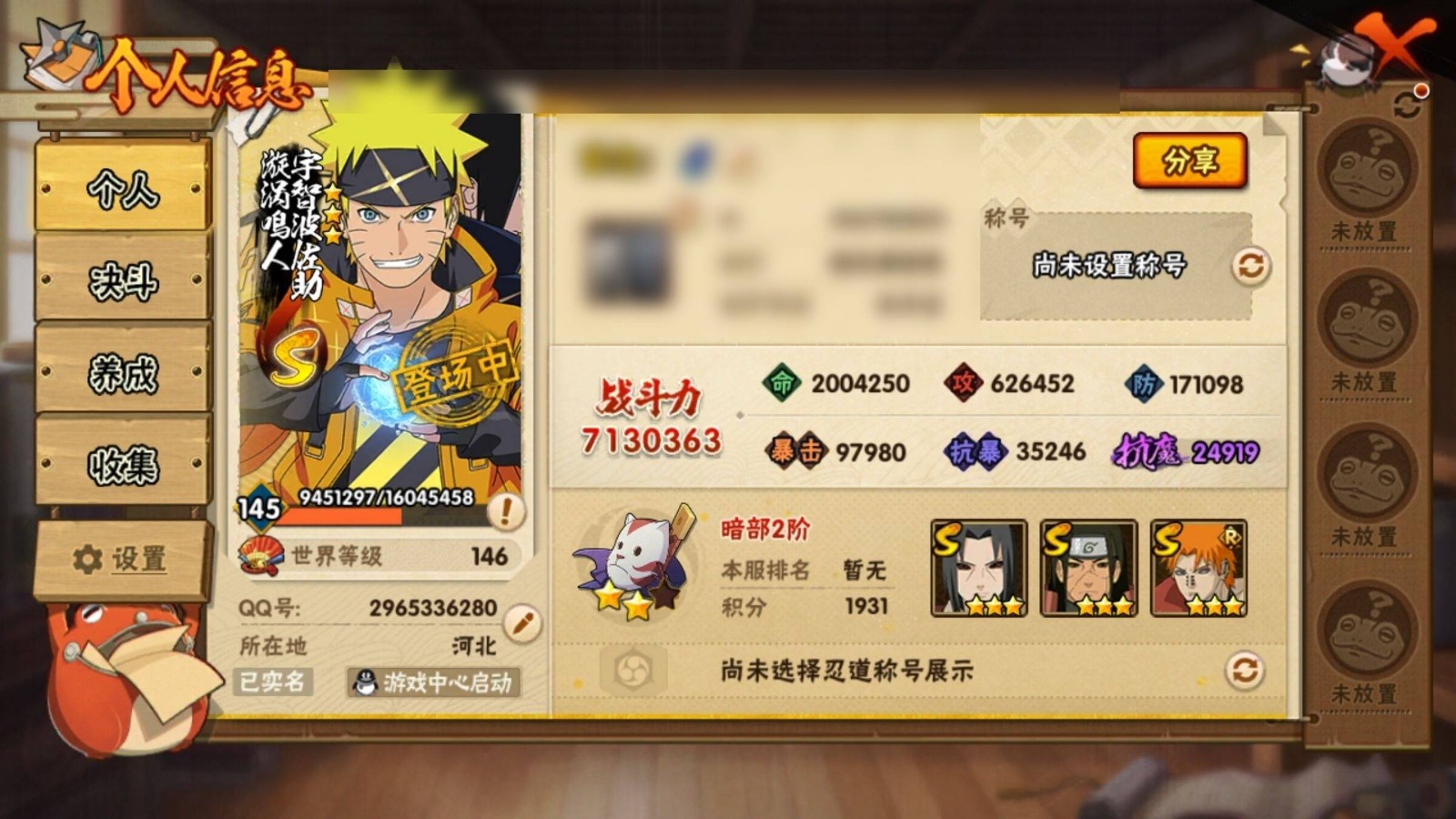 V10 12S忍 28A忍 150忍 1857S碎片 15通灵 700W战力 前1000名 暗部