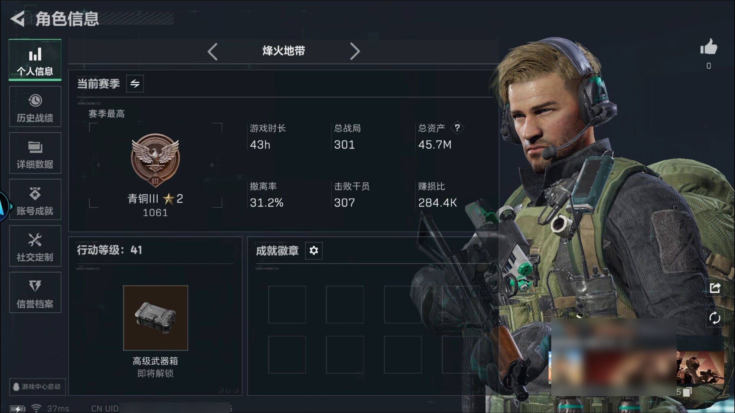 总资产93.3M 6干员外观 1近战 22传说枪械 烽火:三角洲巅峰 战场:列兵