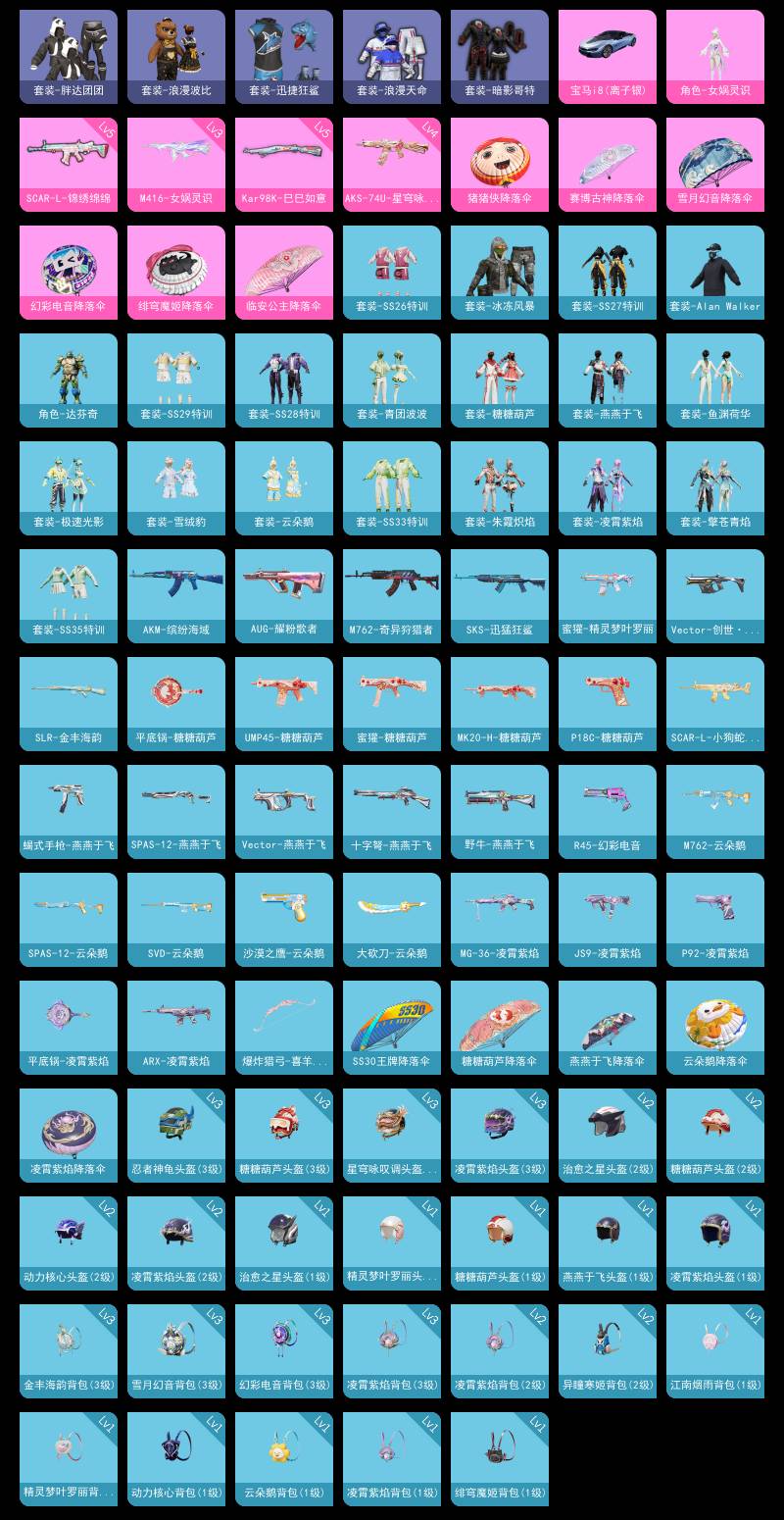 4升级枪 2粉装 113枪皮 85套装 33148热力 6印记 星钻