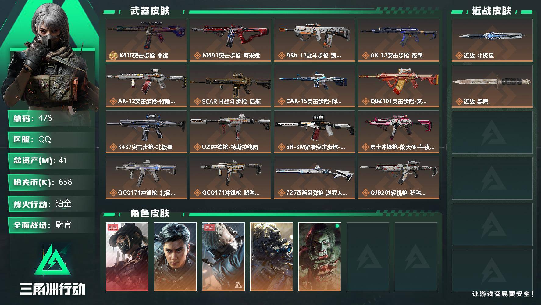 总资产103M 1传说枪械 烽火:铂金 战场:军士长