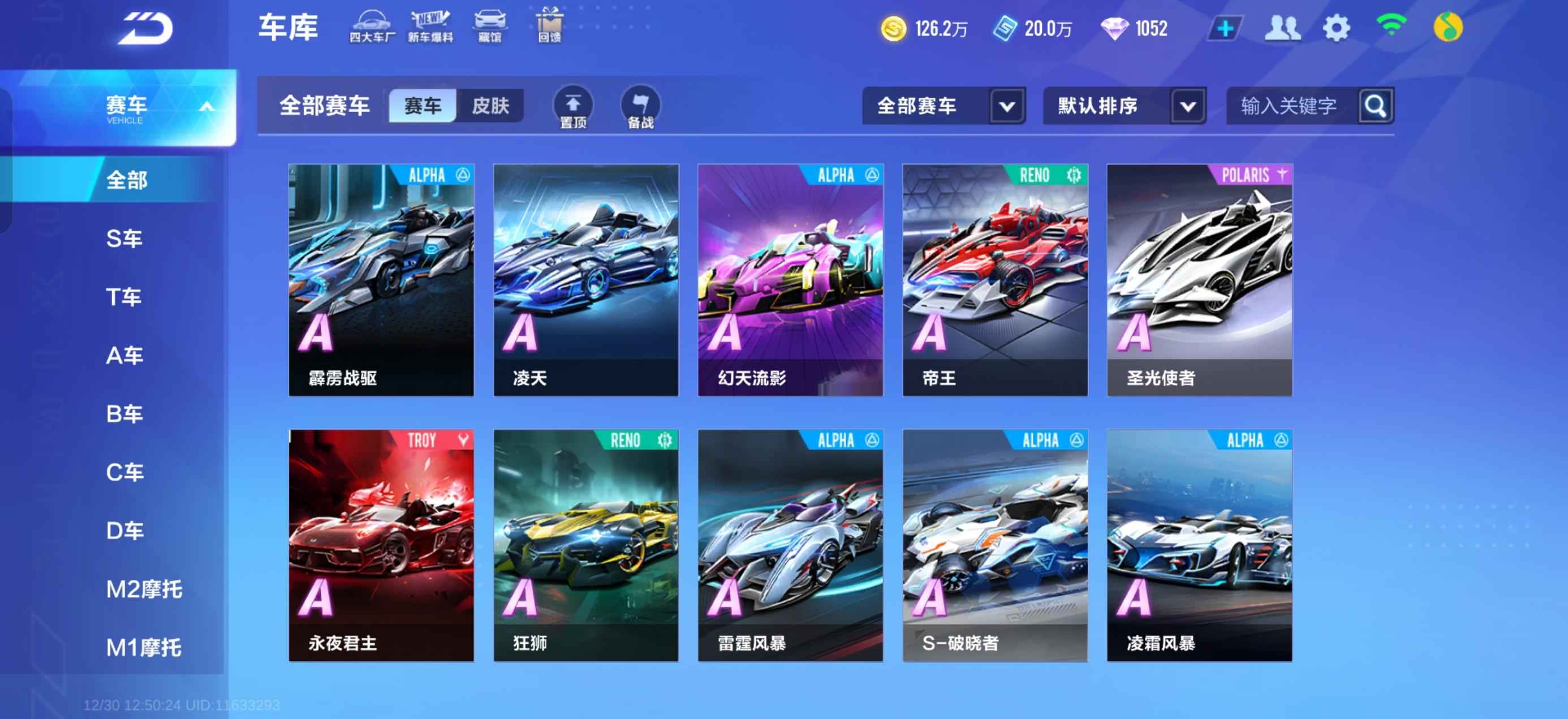 20永久A车 23永久赛车 11宠物 男号 钻石