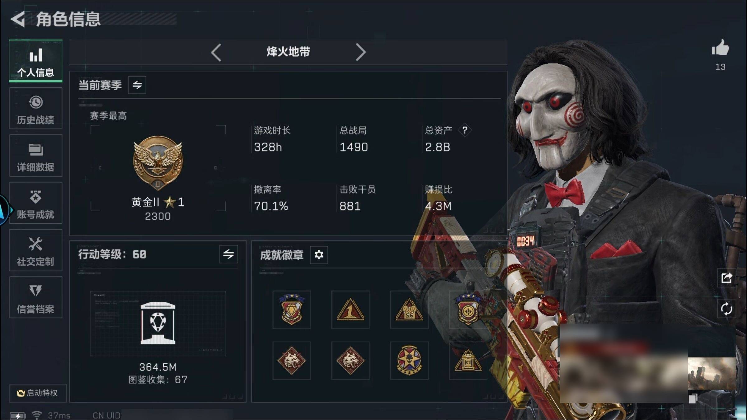 总资产1831M 8干员外观 3传说近战 26传说枪械 三角洲巅峰JYM3Q38XK