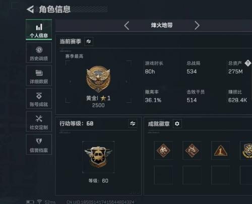 总资产254.8M 2干员外观 1近战 12传说枪械 烽火:黄金 战场:无军衔JYM2G6QR9